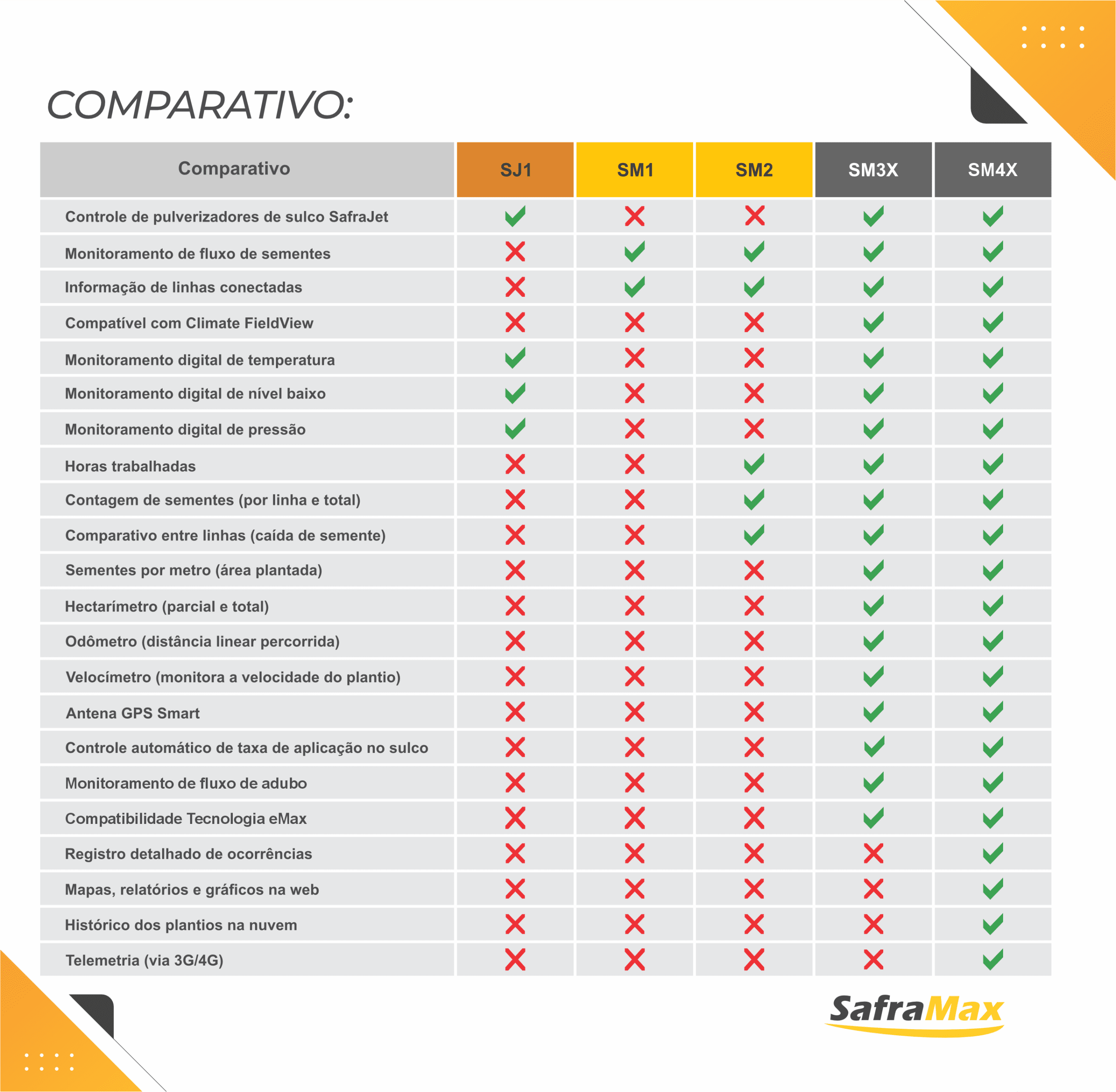 • Controle de pulverizadores de sulco Safrajet;