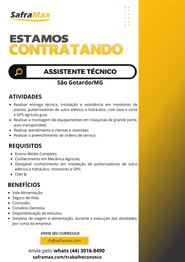 Venha fazer parte de uma das empresas que mais cresce no mercado agrícola brasileiro!
